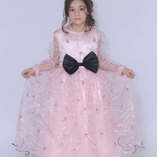 Premium Export Quality –Beautiful T-Pink 3D Butterfly Embroidered Net Maxi (Stitched).
