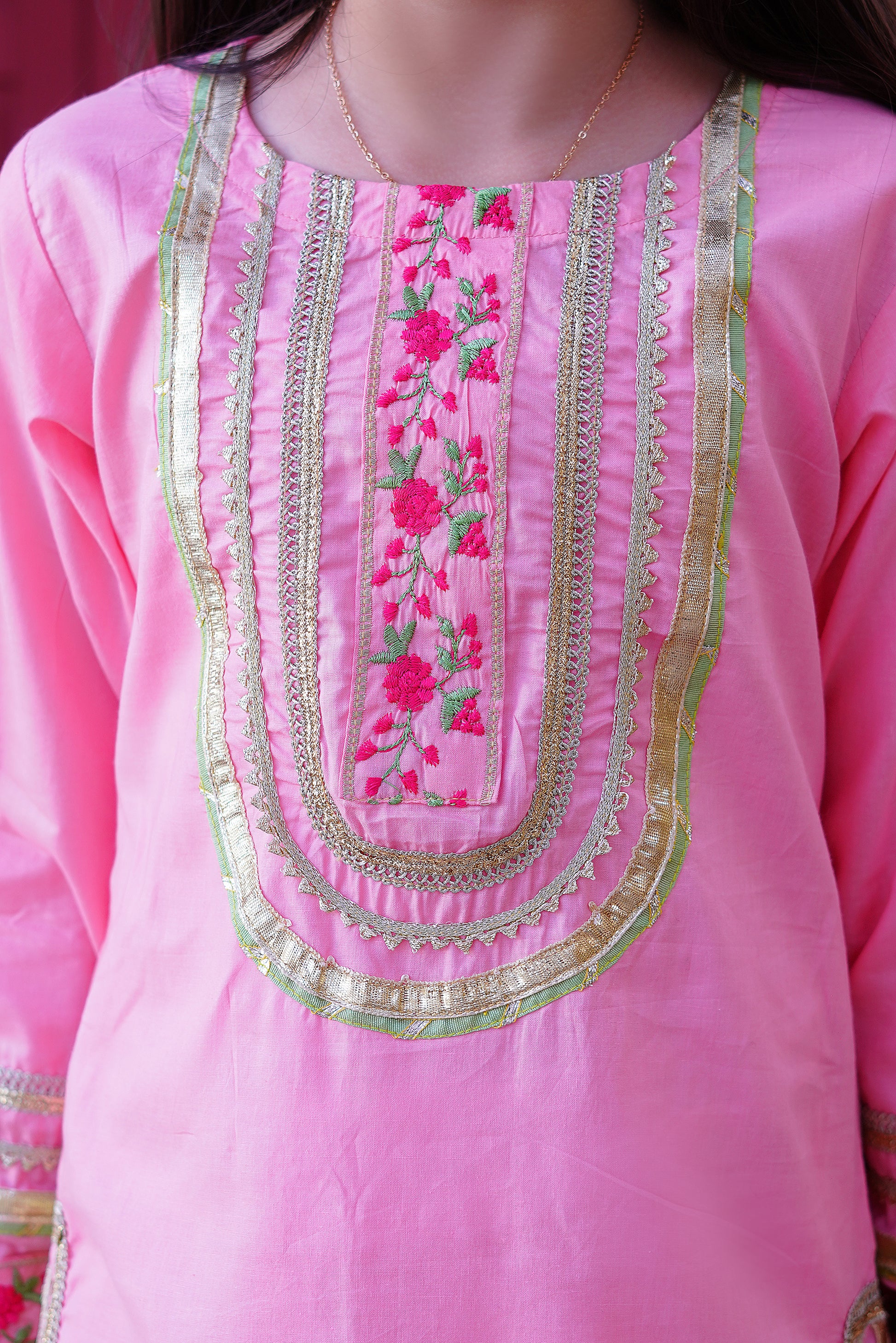 Premium Export Quality Elegant 3-Piece Baby Pink Embroidered Tulip Suit (Stitched).