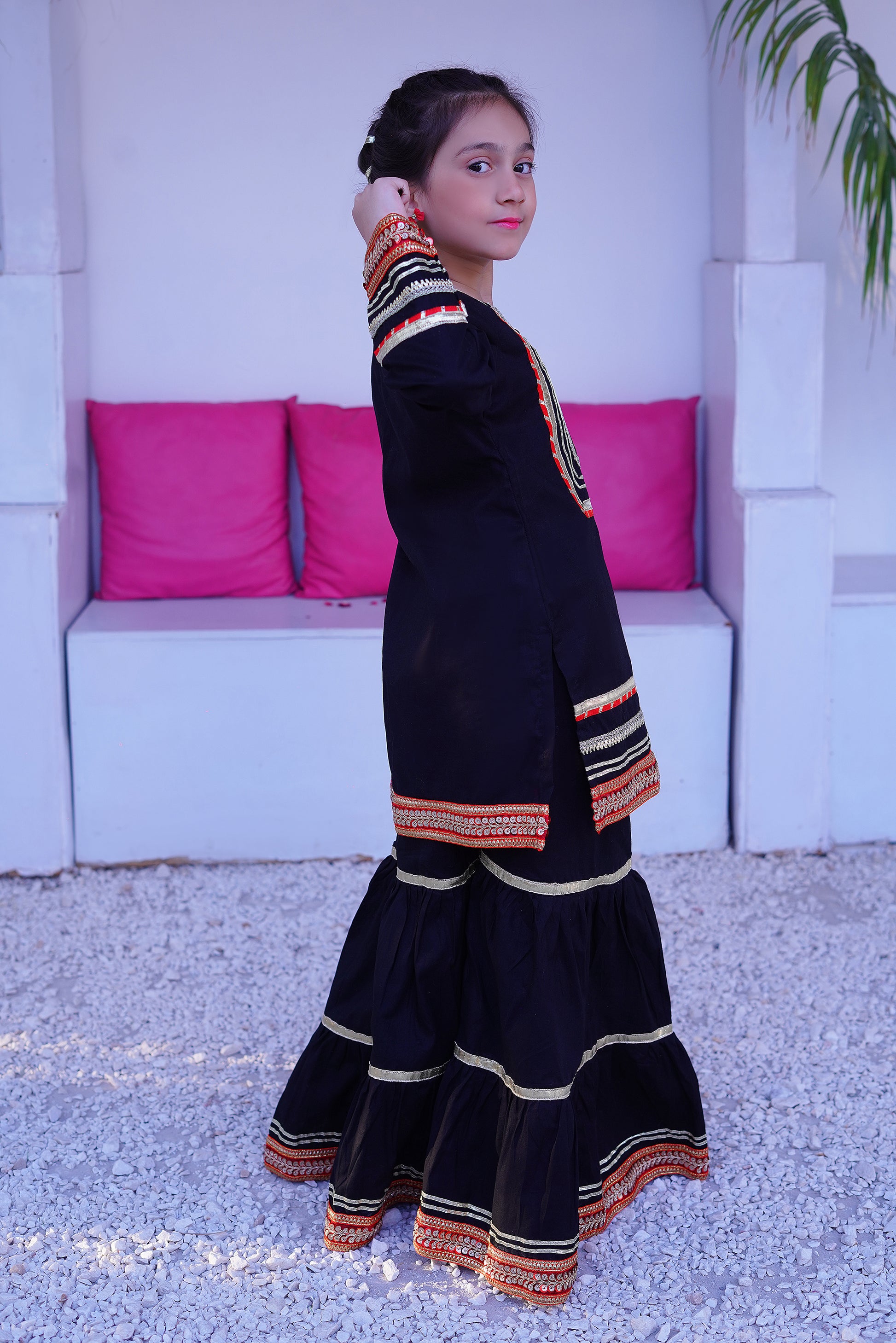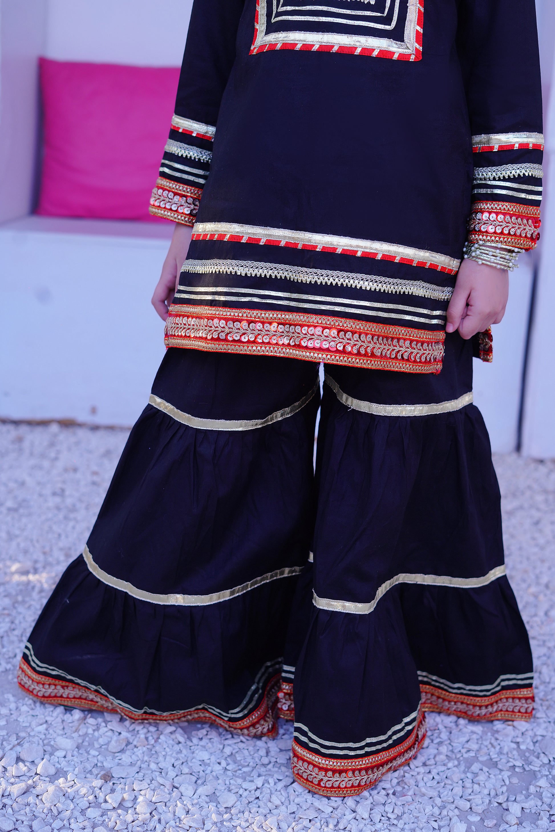 Premium Export Quality Stunning 3-Piece Black Jet Cotton Gharara Suit (Stitched)t