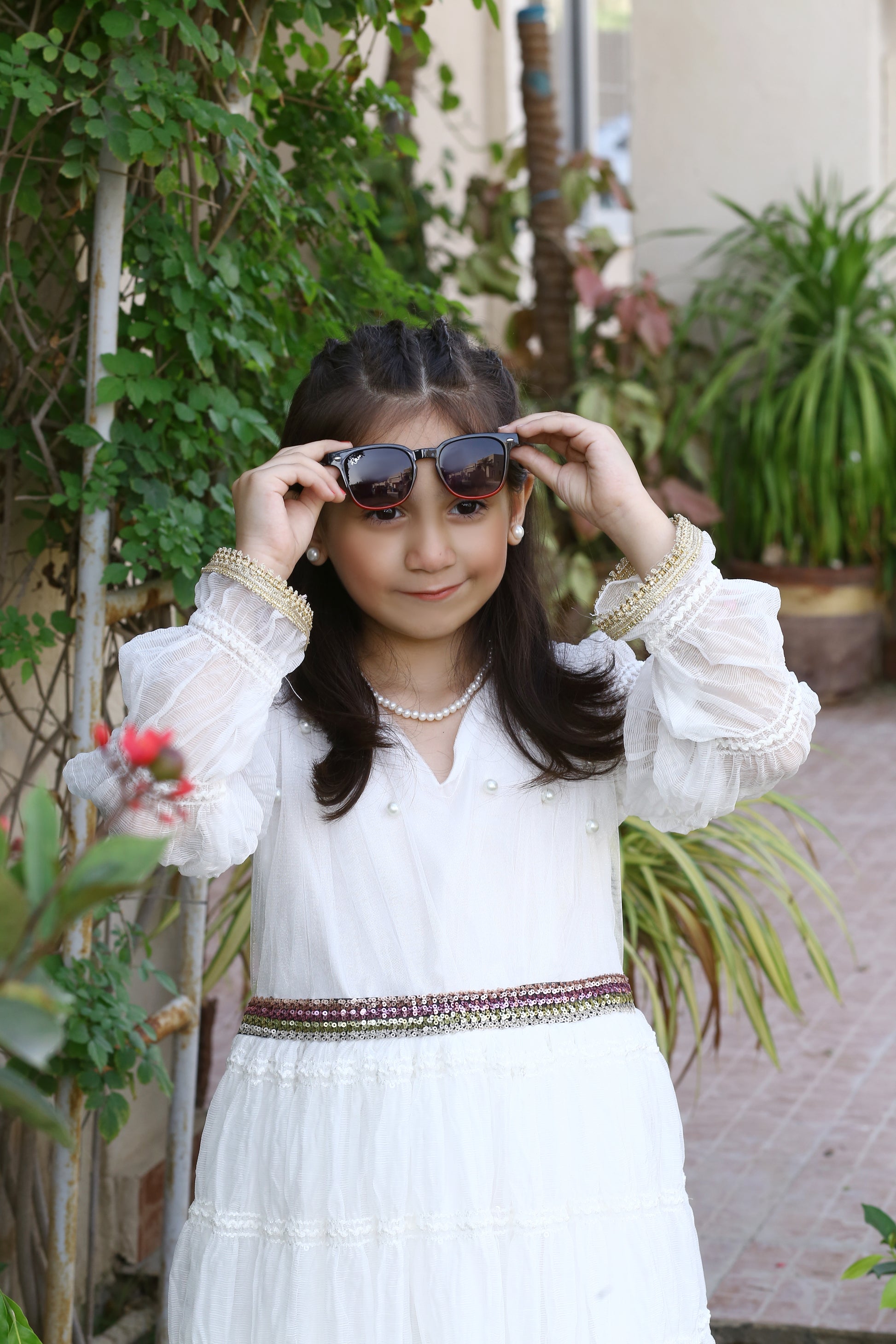 White Chiffon Frill Frock – Soft, flowing fabric with delicate frill accents for a graceful silhouette.