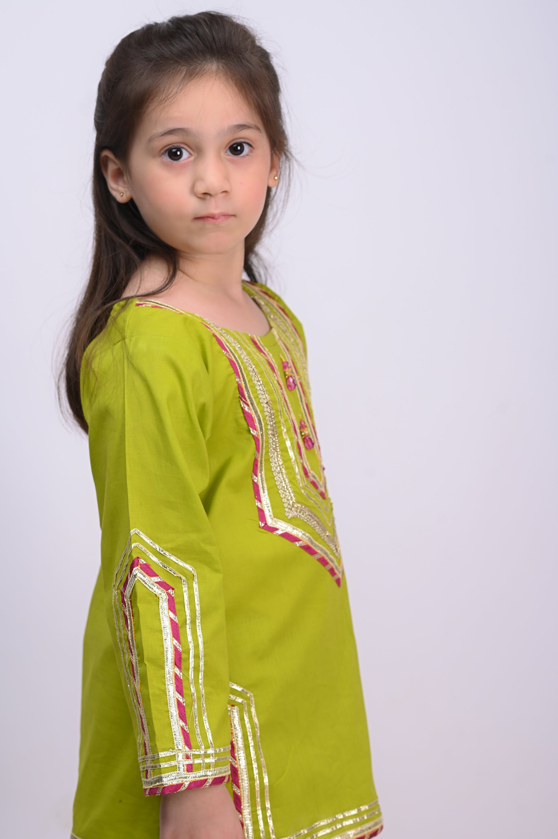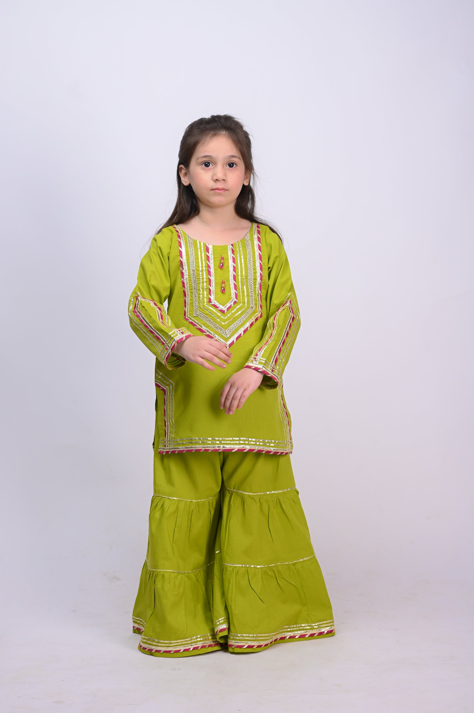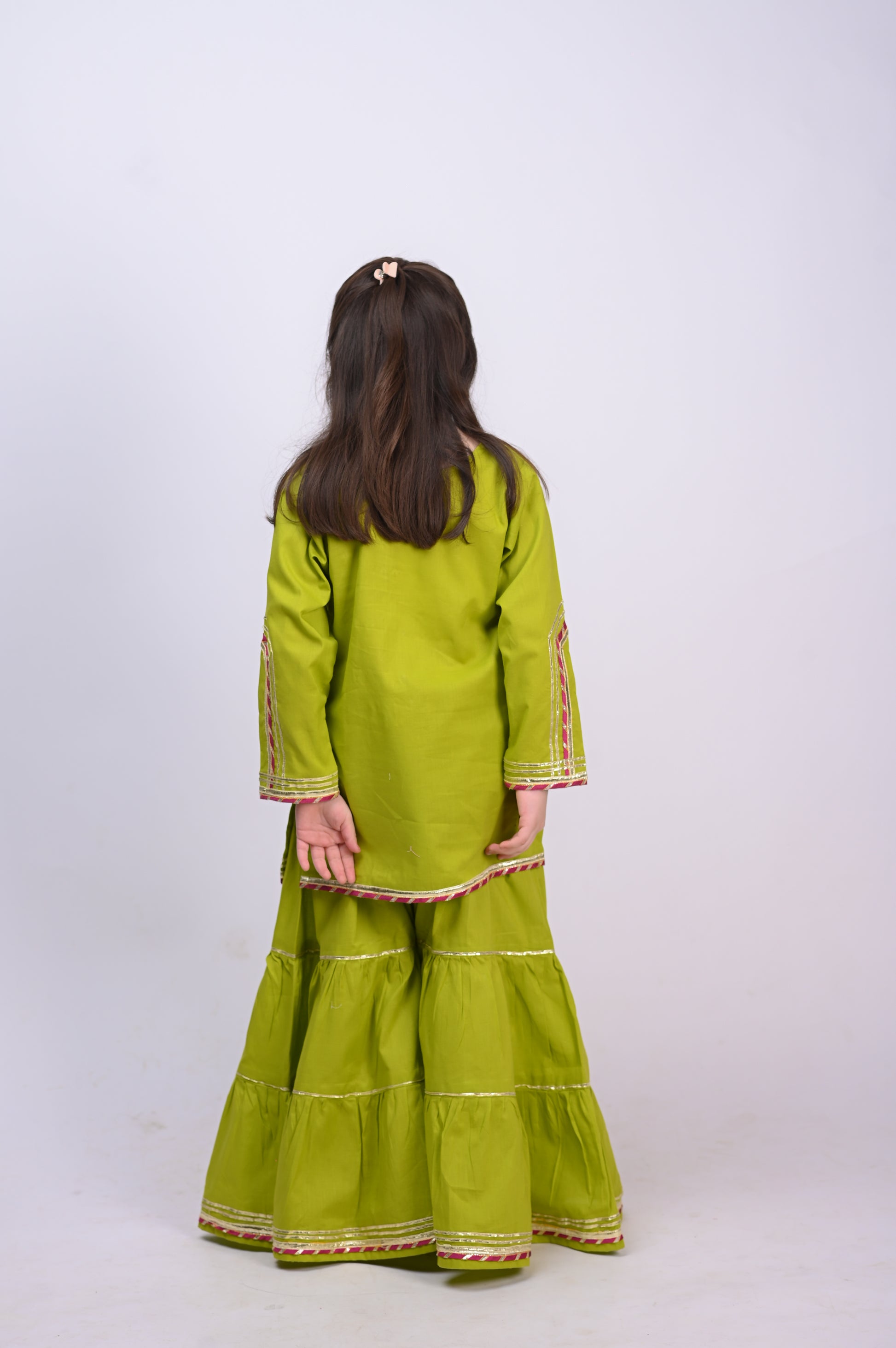 Premium Export Quality – Stunning 3-Piece Dhani Green Cotton Gharara Suit (Stitched).