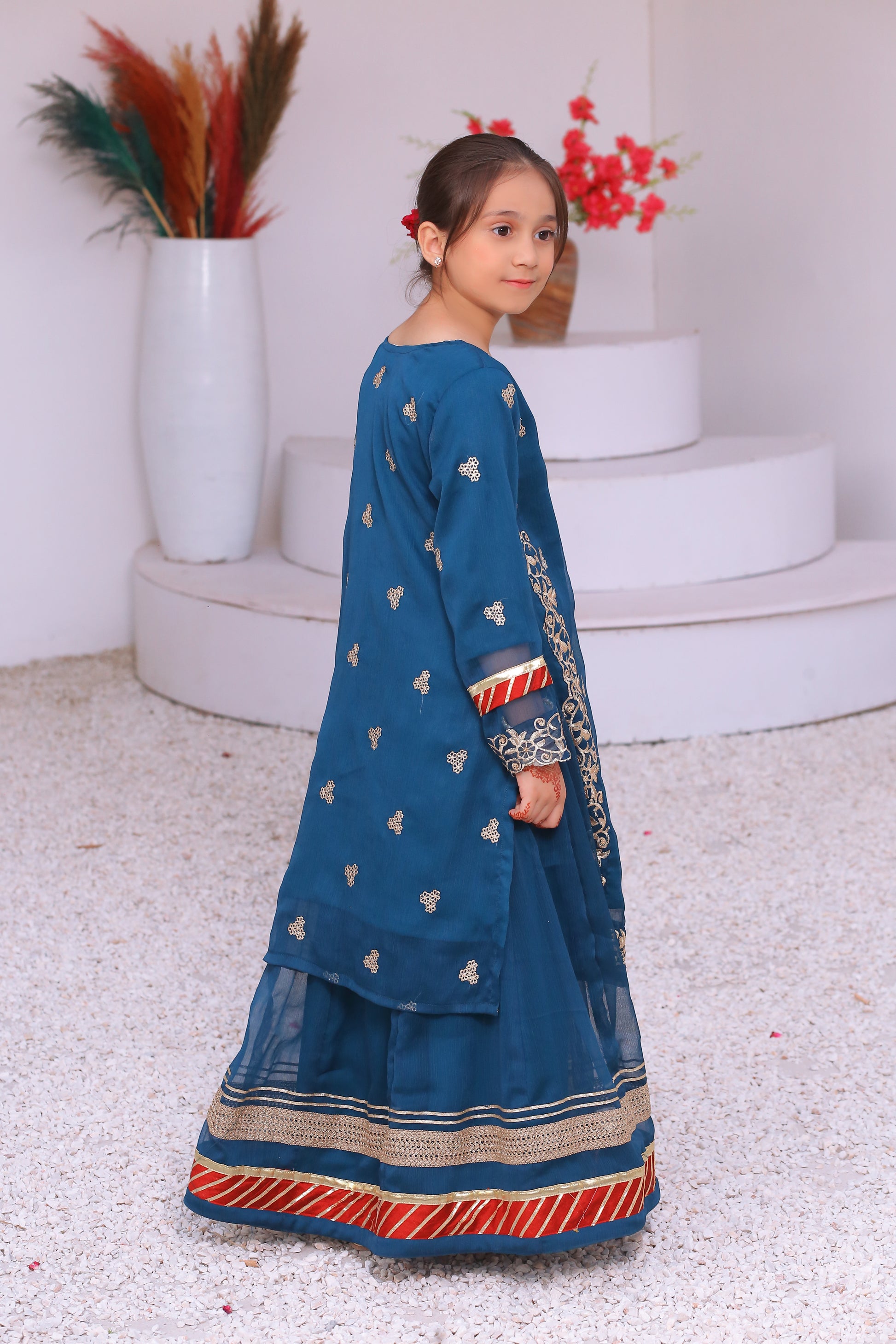 Premium Export Quality – Stunning Elegant 3-Piece Peacock Embroidered Chiffon Lehenga Suit (Stitched).