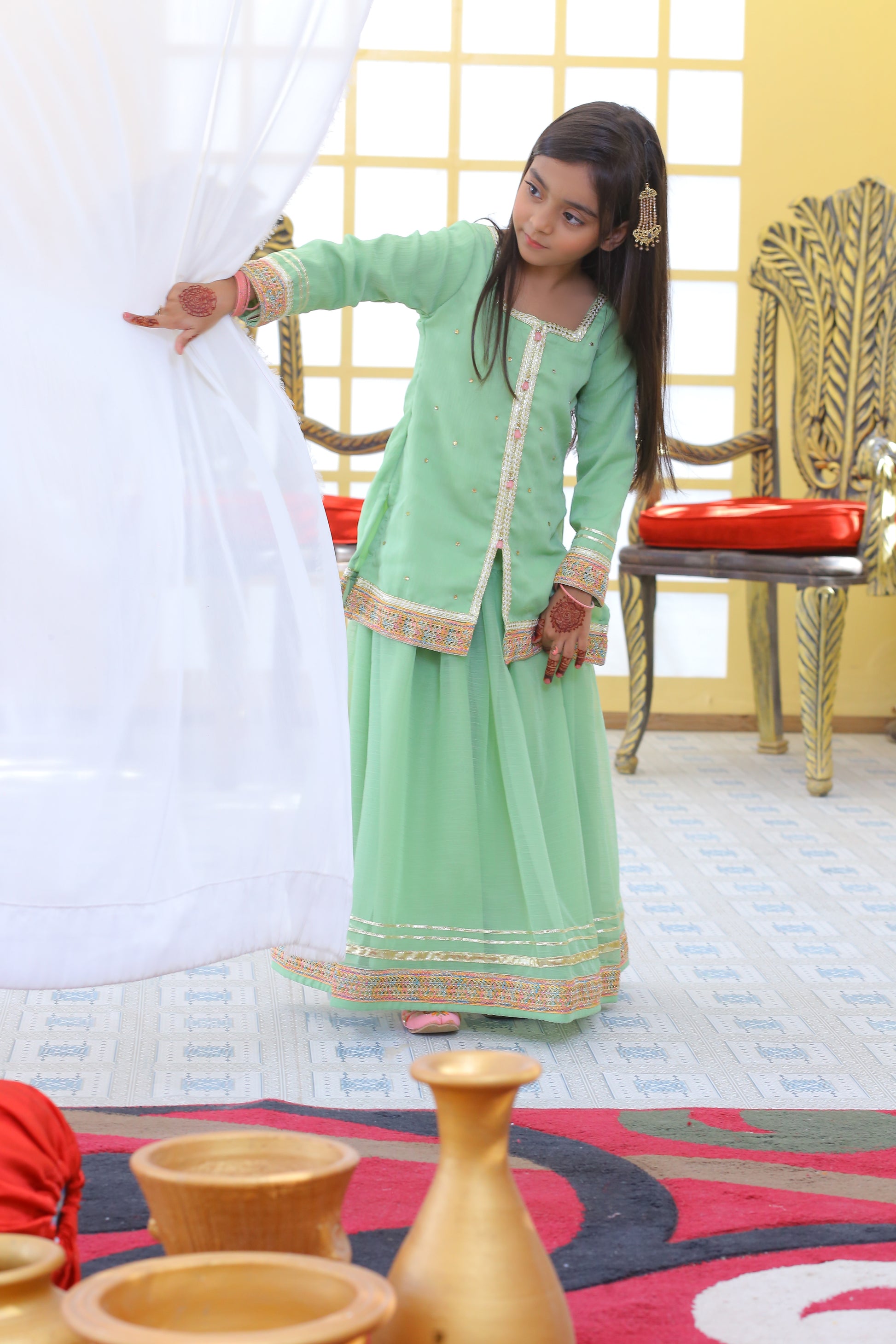 Pistachio Green Chiffon Lehenga – Lightweight and flowy, perfect for graceful movement.