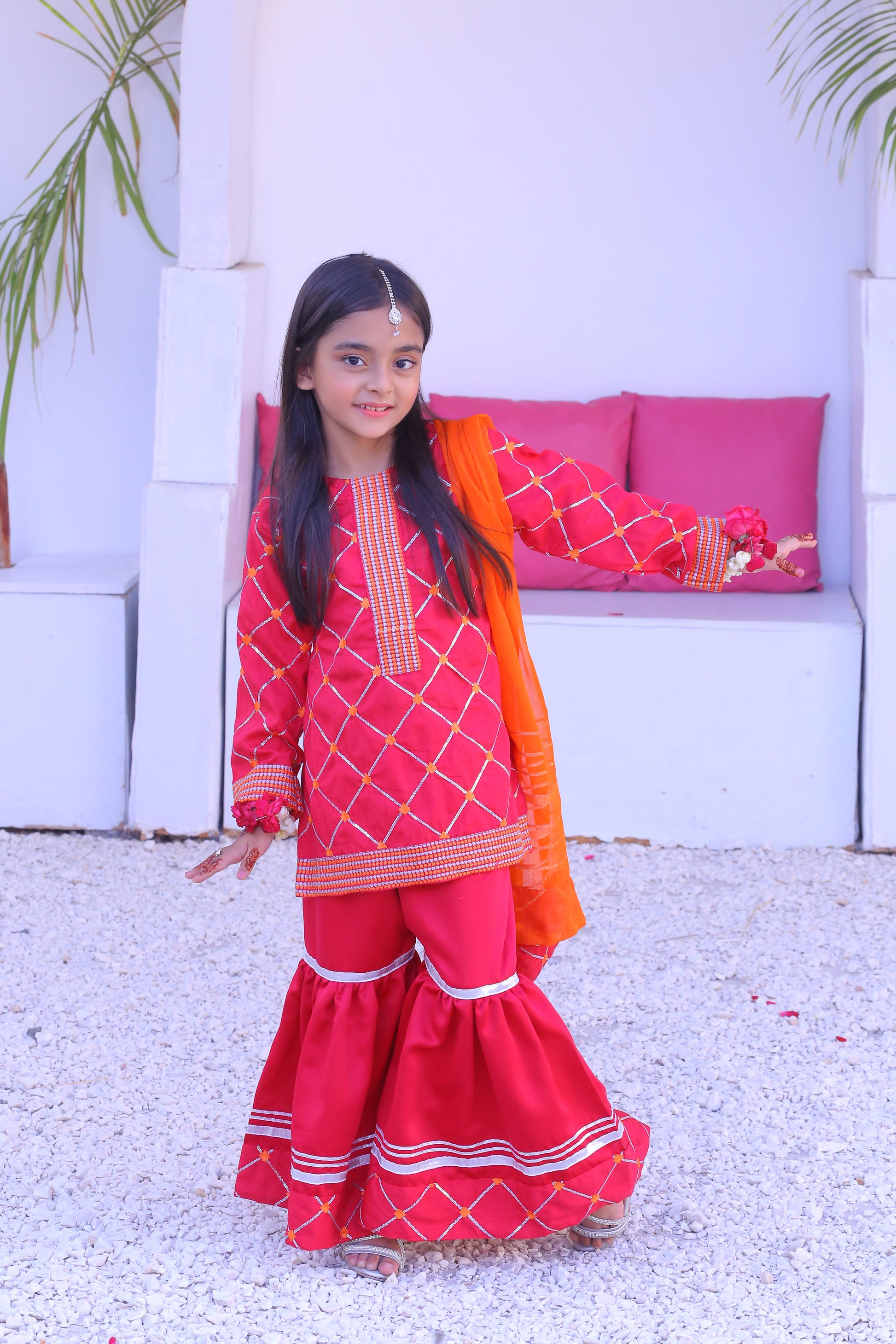 Premium Export Quality – Beautiful 3-Piece Gharara Suit (Stitched).