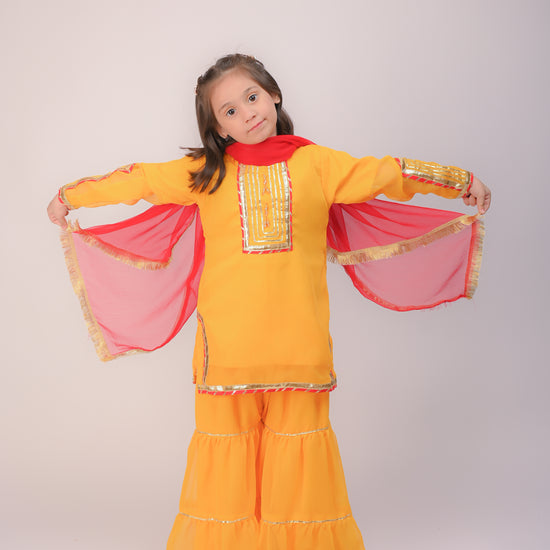 Yellow Chiffon Kurti & Gharara with intricate detailing